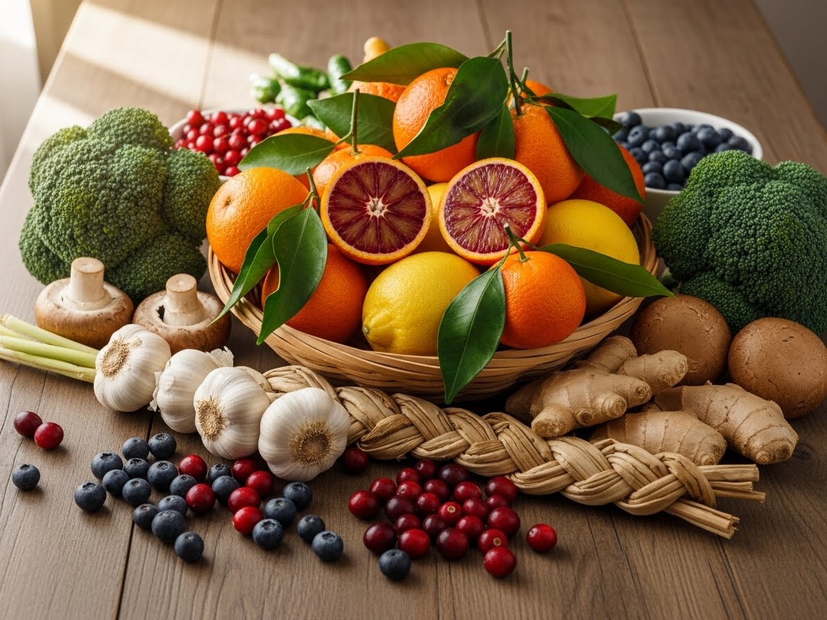 - ✅ 감귤류, 브로콜리, 버섯, 굴, 김치, 베리류, 마늘, 생강 등 다양한 면역력 식재료를 꾸준히 섭취하세요.
