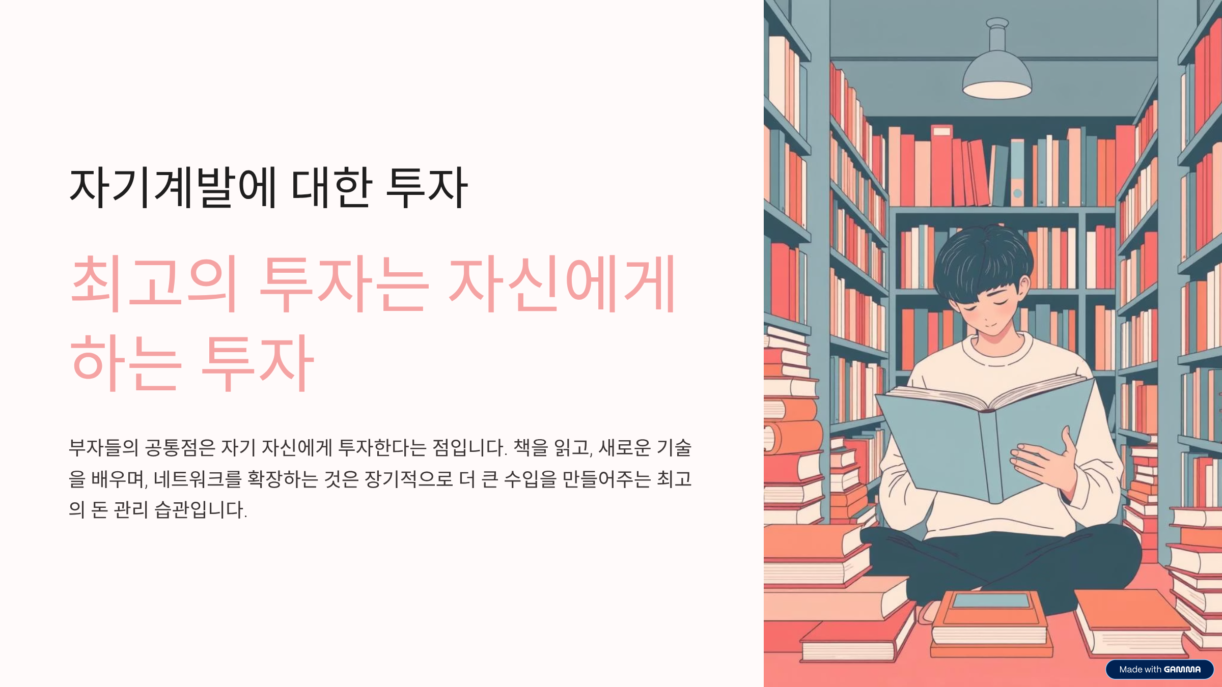 마지막으로, 부자들의 가장 중요한 공통점은 바로 '자기 자신에게 투자'하는 습관입니다. 이는 단순히 돈을 버는 기술을 넘어서는 근본적인 투자입니다. 끊임없이 책을 읽고, 새로운 기술을 배우며, 관련 분야의 전문가들과 네트워크를 확장하는 등 지적, 사회적 자본을 꾸준히 늘려나갑니다. 이러한 자기계발은 궁극적으로 더 높은 수준의 수입을 창출할 수 있는 능력을 배양하고, 새로운 기회를 포착하게 합니다. 지식과 경험의 축적은 단순히 돈을 버는 행위를 넘어, 삶의 질을 향상시키고 장기적으로 더욱 큰 부와 성공을 이끌어내는 최고의 돈 관리 습관이라 할 수 있습니다.
