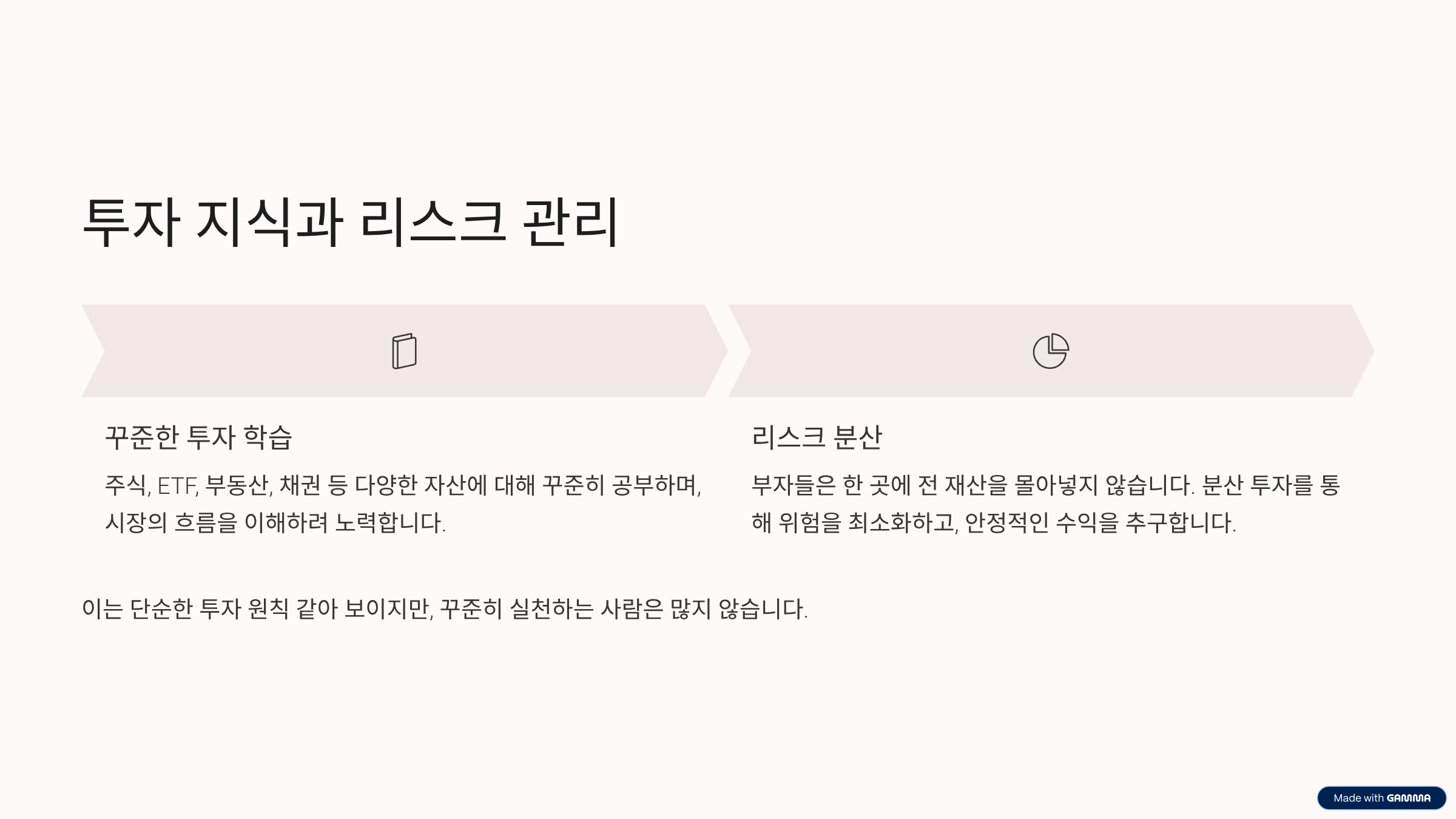 성공적인 투자에서 리스크 분산은 아무리 강조해도 지나치지 않습니다. 부자들은 한 곳에 모든 자산을 몰아넣는 위험한 행위를 피하고, 다양한 자산에 분산 투자하여 위험을 최소화합니다. 이는 단순히 여러 주식에 투자하는 것을 넘어, 주식, 채권, 부동산, 원자재 등 서로 상관관계가 낮은 자산군에 배분함으로써 시장의 변동성에 대한 방어력을 높이는 전략입니다. 꾸준한 포트폴리오 리밸런싱을 통해 목표 자산 배분을 유지하는 것 또한 중요합니다. 이러한 분산 투자는 단기적인 고수익을 쫓기보다는 장기적으로 안정적인 수익을 추구하는 부자들의 현명한 접근 방식입니다.