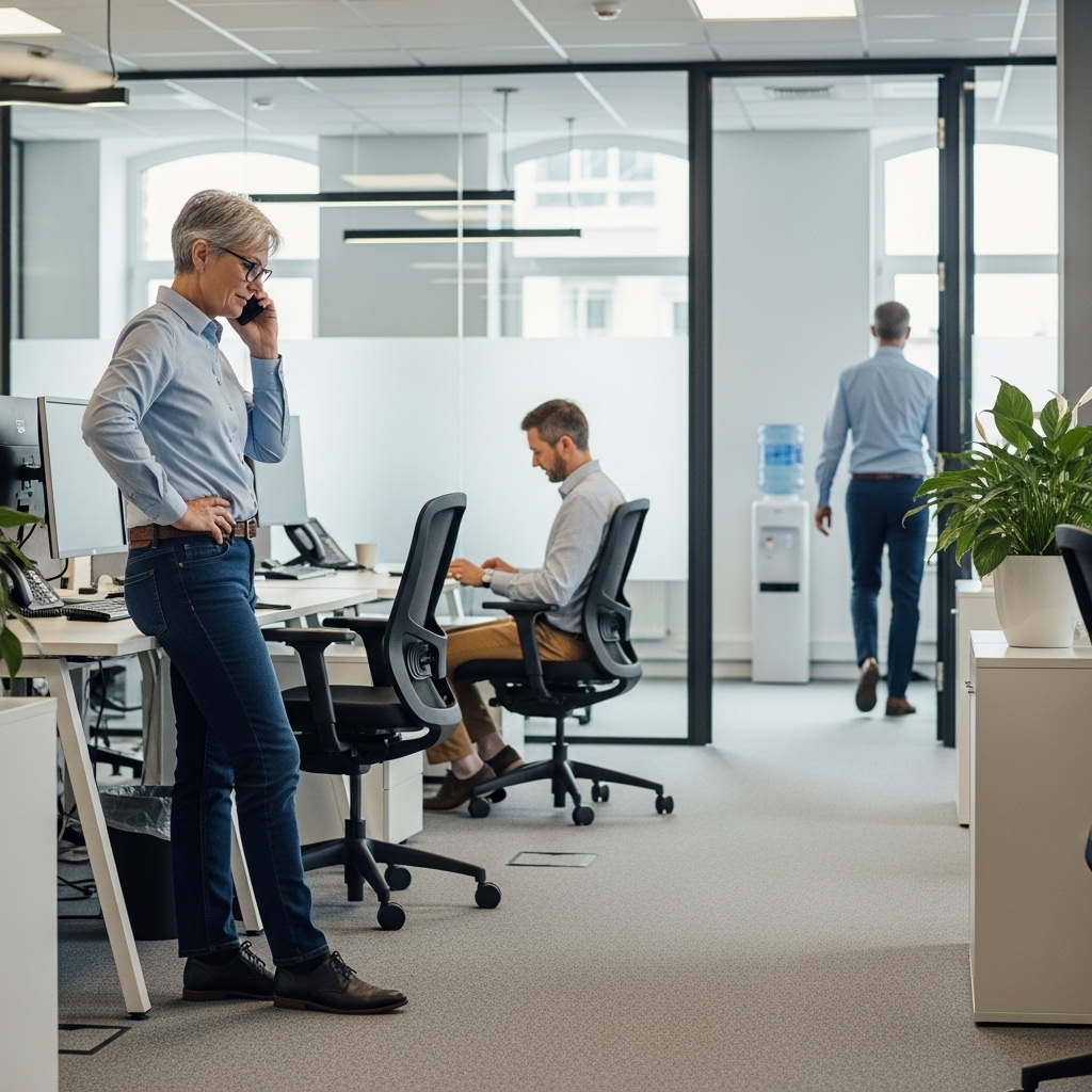 - 서서 일하기 또는 대화하기: 가능하면 서서 일할 수 있는 스탠딩 데스크를 활용하거나, 전화 통화를 할 때도 서서 움직여보세요.