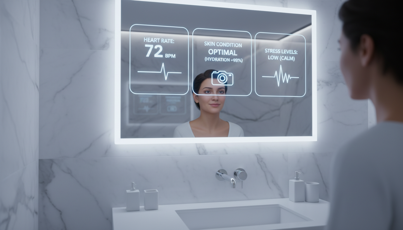 세면대 앞에 서자 '지능형 스마트 미러'가 작동했습니다. 단순히 얼굴을 비추는 거울이 아닙니다. 고해상도 카메라와 분광 센서가 단 3초 만에 안색, 동공의 움직임, 피부 수분도, 그리고 미세한 혈류 흐름을 감지해 심박수와 스트레스 지수를 화면에 띄워줍니다. "어젯밤 수면 부족으로 피부 탄력이 15% 저하되었습니다. 수분 섭취를 권장합니다"라는 문구가 거울 표면에 나타났을 때의 그 신기함이란 말로 다 표현할 수 없었죠.